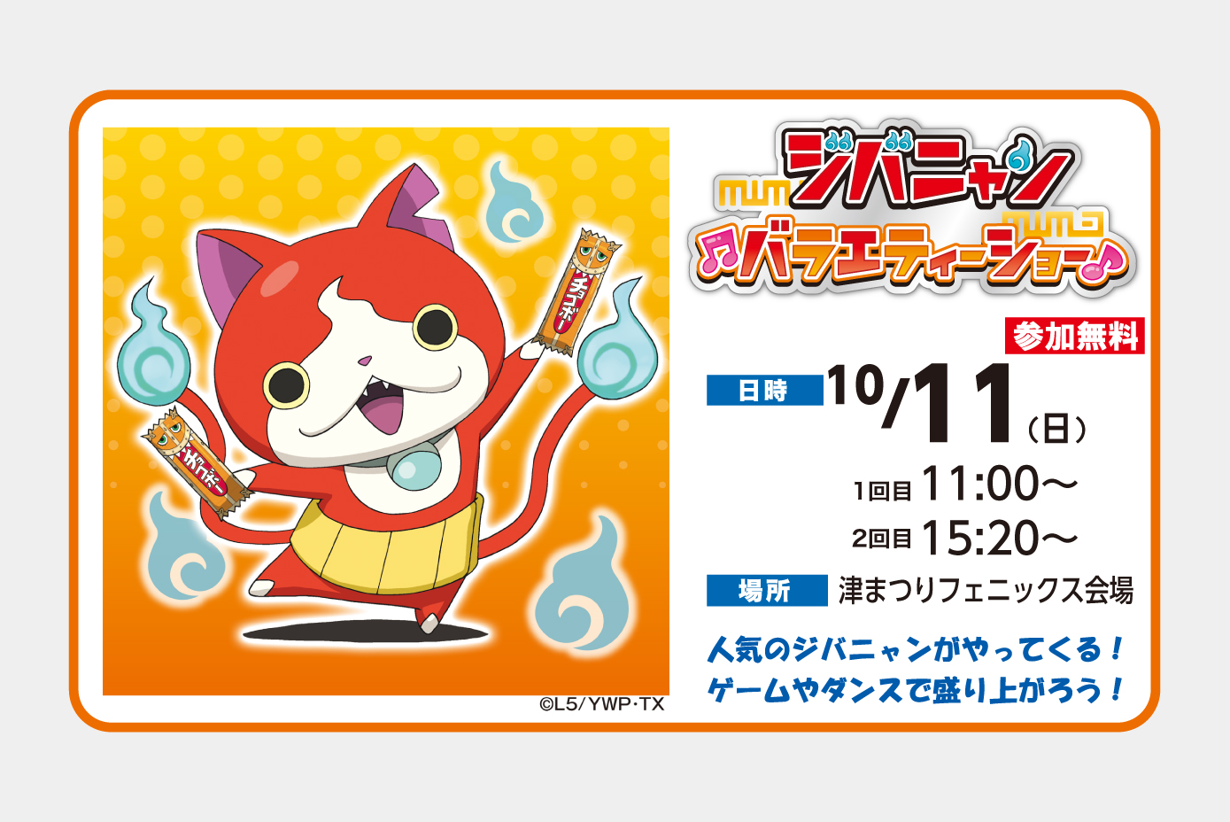 津まつりYEG祭のステージにてジバニャン バラエティーショーが開催されます。