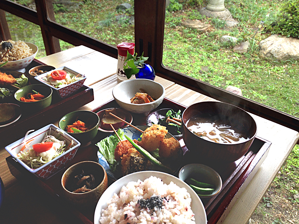 御膳にぎっしりのおかずはほとんど野菜料理。11月の献立は、野菜の串カツ風に車麩のプルコギ風などなど。なん品目あるんだろう〜?(≧∇≦)