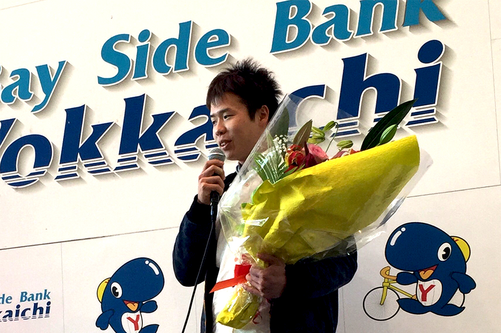 今年2月の地元 四日市記念競輪では、初の記念出走。緊張して本来の力を出し切れませんでしたが、半年後の夏に行われた四日市記念競輪では、初日から 地元の先輩上田国広選手を連れて 果敢な競走で押し切り、上田選手とワンツーを決めるなど、半年でグッと大きくなった、そんなイメージ。