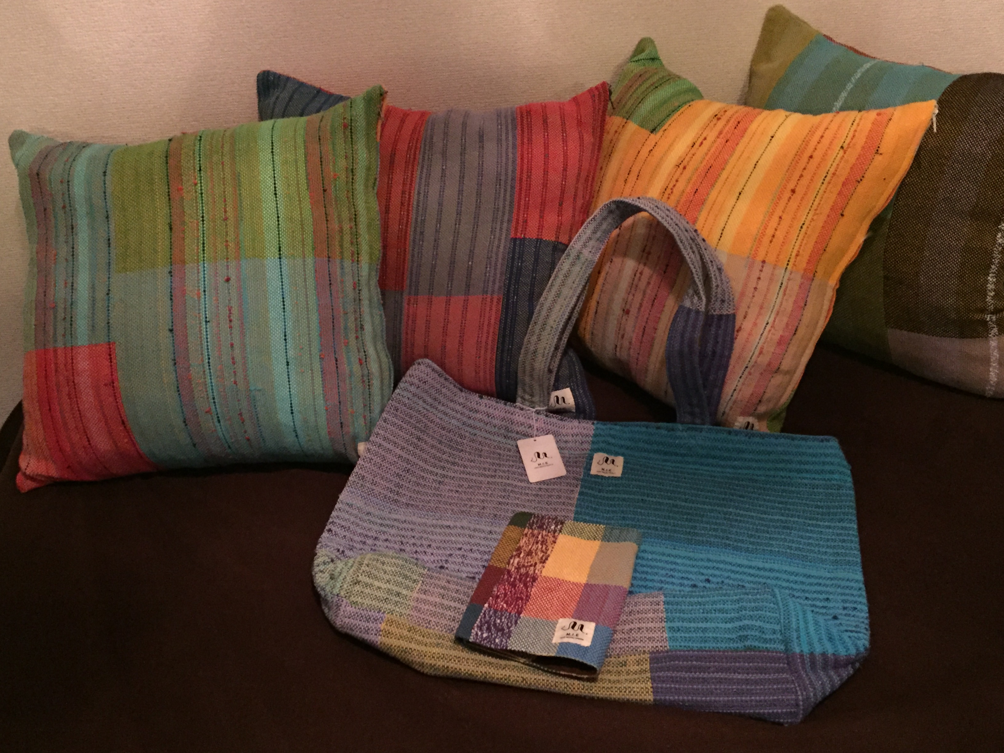 思わず手にとってしまったのは、クッションやトートバックにブックカバー。これ以外にもストールやテーブルランナーになりそうな生地もあった。