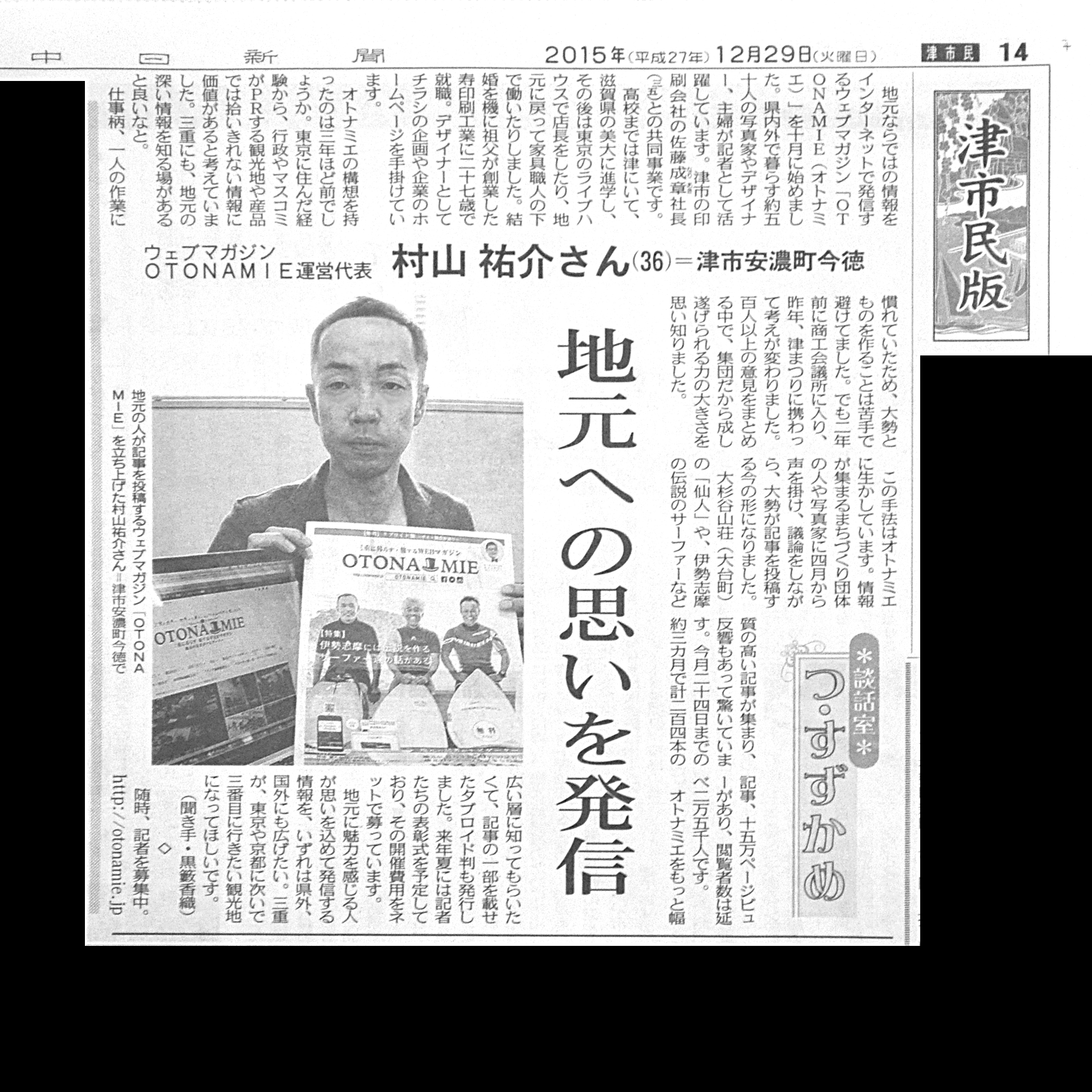 OTONAMIEのnari_bow編集委員長には内緒で、ちゃっかり中日新聞に取材掲載していただきました。