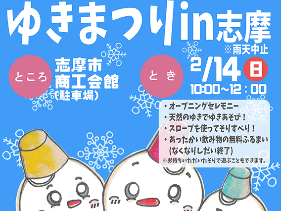 ゆきまつりin志摩は志摩市商工会青年部設立10週年記念事業の一環で主催が志摩市商工会青年部のため開催は志摩市商工会館の駐車スペースを利用して行うようです。