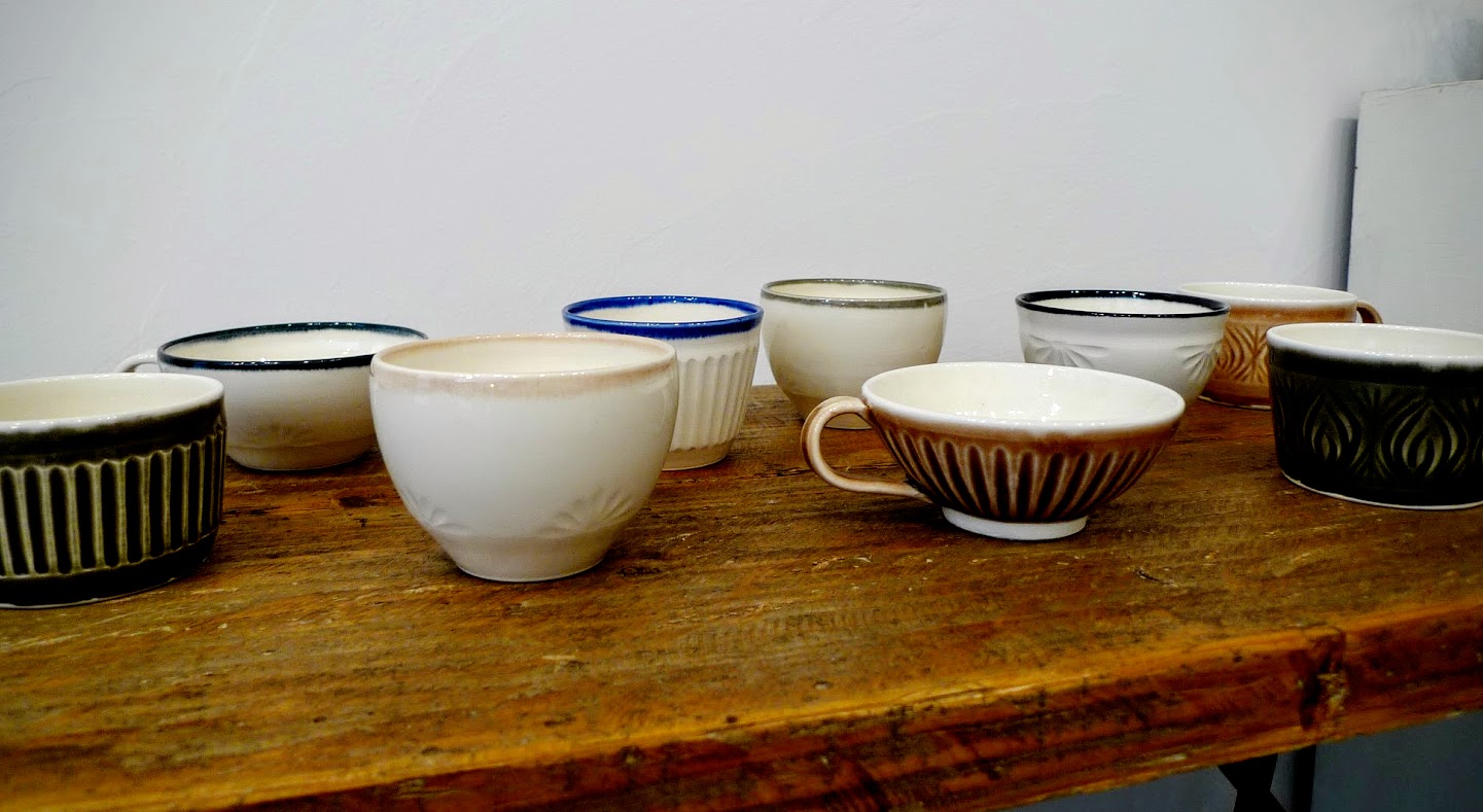 店内には企画展初日のハーブティーイベントのために河原崎さんがつくったカップが並んでいました。