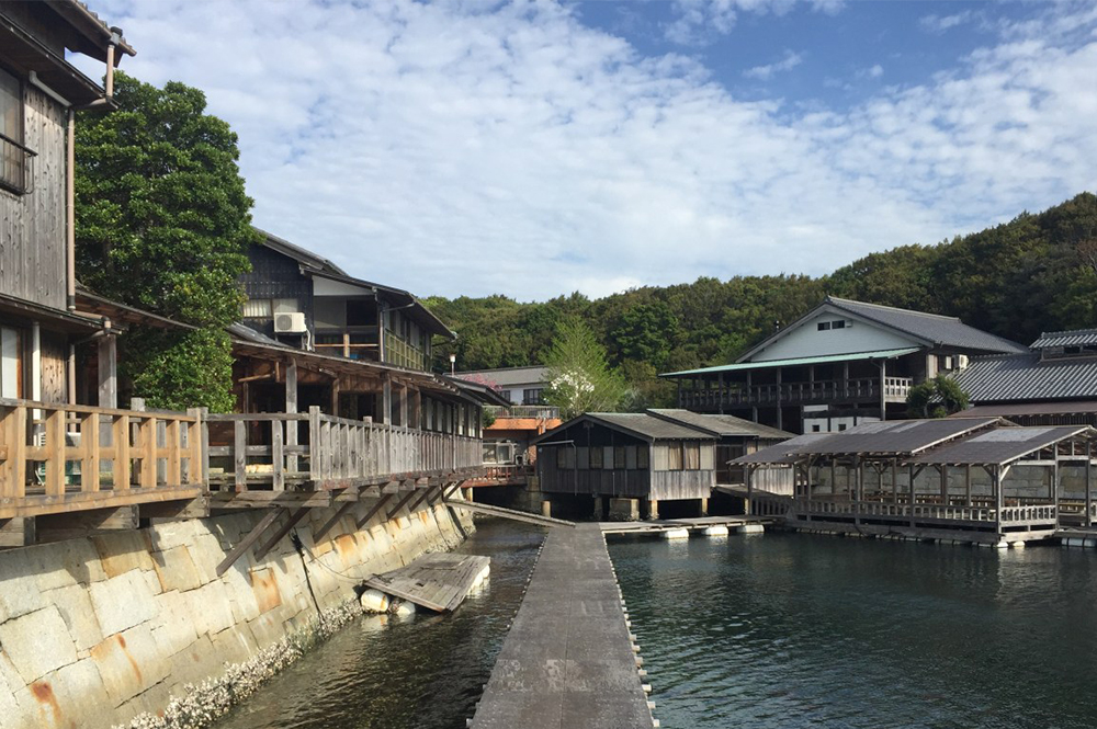 英虞湾は、日本で初めて真珠養殖が行われた場所でも有名。昨今は、サミット会場となる賢島は、英虞湾の中央に位置する。入り組んだ地形で水通しの悪い湾内にもかかわらずある程度水質が保たれているのは、そこで暮らす人と自然との共生のバランスが保たれているからだろう。その象徴とも思える場所が、檜扇荘(ひおぎそう)。