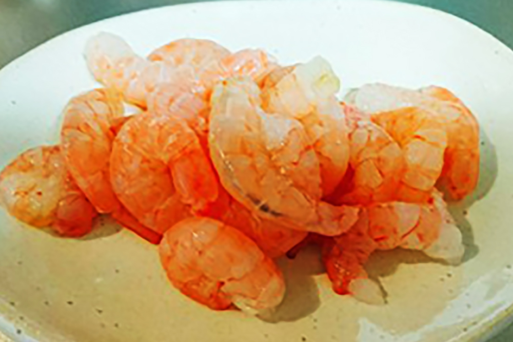 そして、エビを取りだし殻を剥いて。。。「あ、おばあちゃんのエビこんな感じになっとった!おばあちゃんも殻を剥いていれとったんや!」と、発見♪