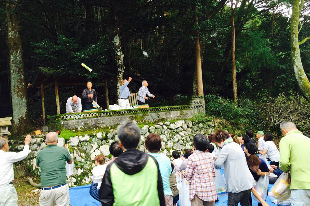 さて午後からは神原地区の金比羅さんへ。何でも当日秋の祭事があるらしく餅まきも行われるとの事。