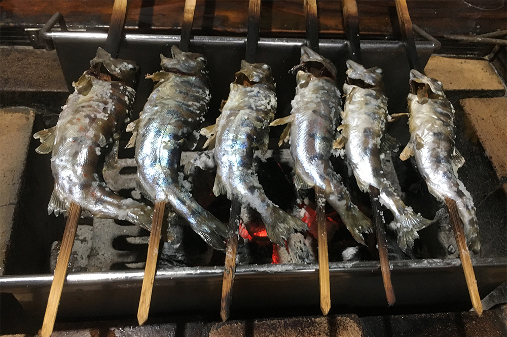 お部屋の中で自分でアマゴを焼くんです♩