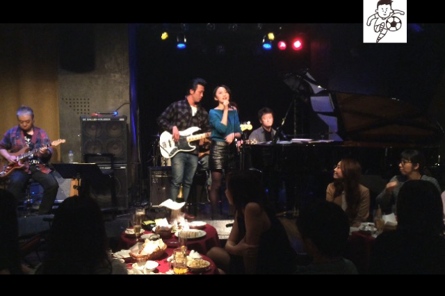 ライブ後の新年会で歌声を披露。