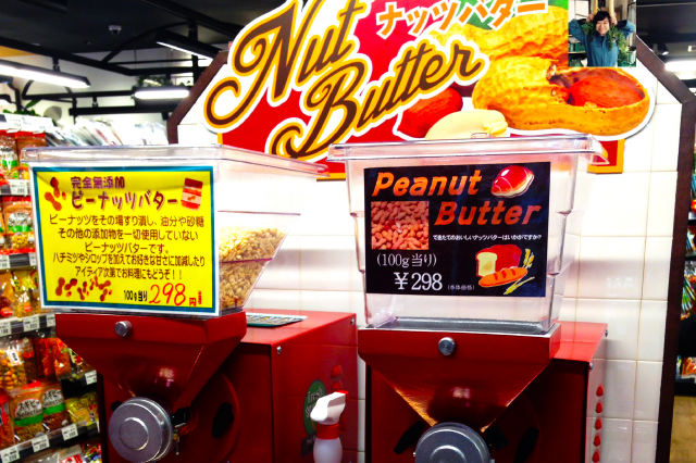 ピーナツバターの機械。完全無添加のピーナツバター。コッテリ濃厚なピーナツのみ。ローストビーフとか合いそう。お砂糖とお醤油少し足して春野菜のピーナツ和えも美味しそう。