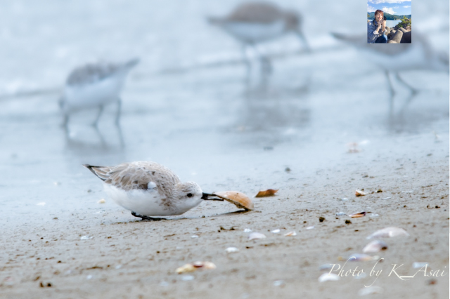 引き波と同時に海の方へとと一斉にダッシュし砂の中のゴカイや貝、甲殻類等を食します。