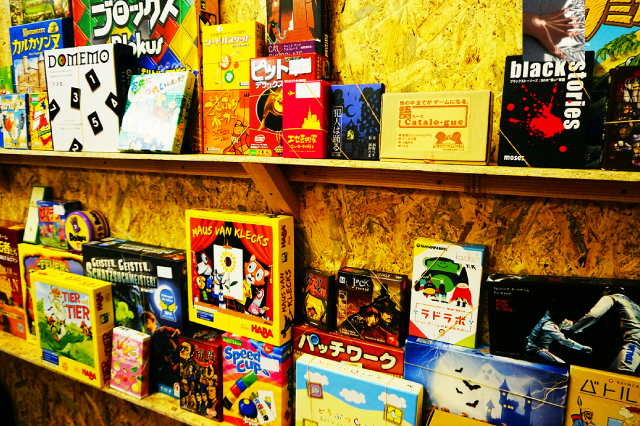 クラウドファンディングで改装資金を集めて造られた空間は、構造そのままながら暖かさのあるつくりになっています。そして一番目立つカウンターにはずらりと並んだボードゲームやカードゲームが!