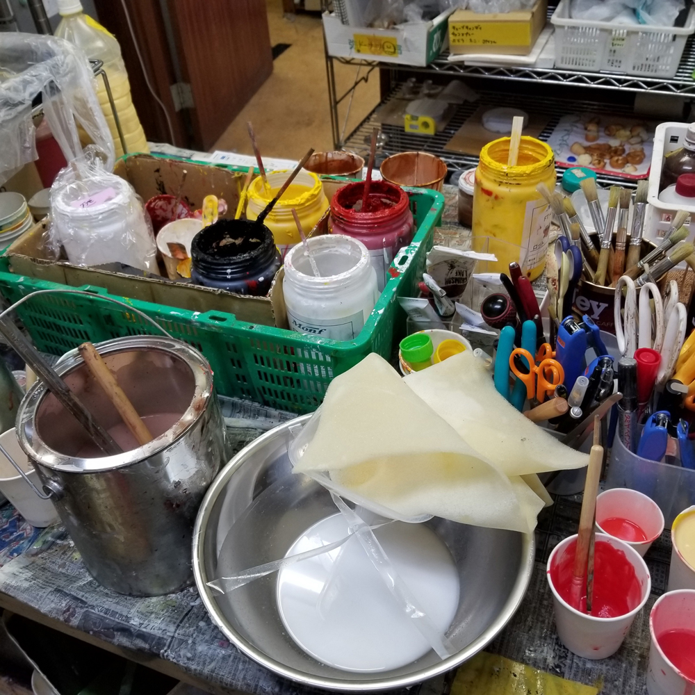 最初の大元の型を取る行程から、その後材料をいれて出来上がって塗装をして完成という一連の工程の説明をしてもらいました。