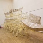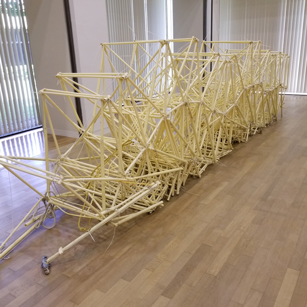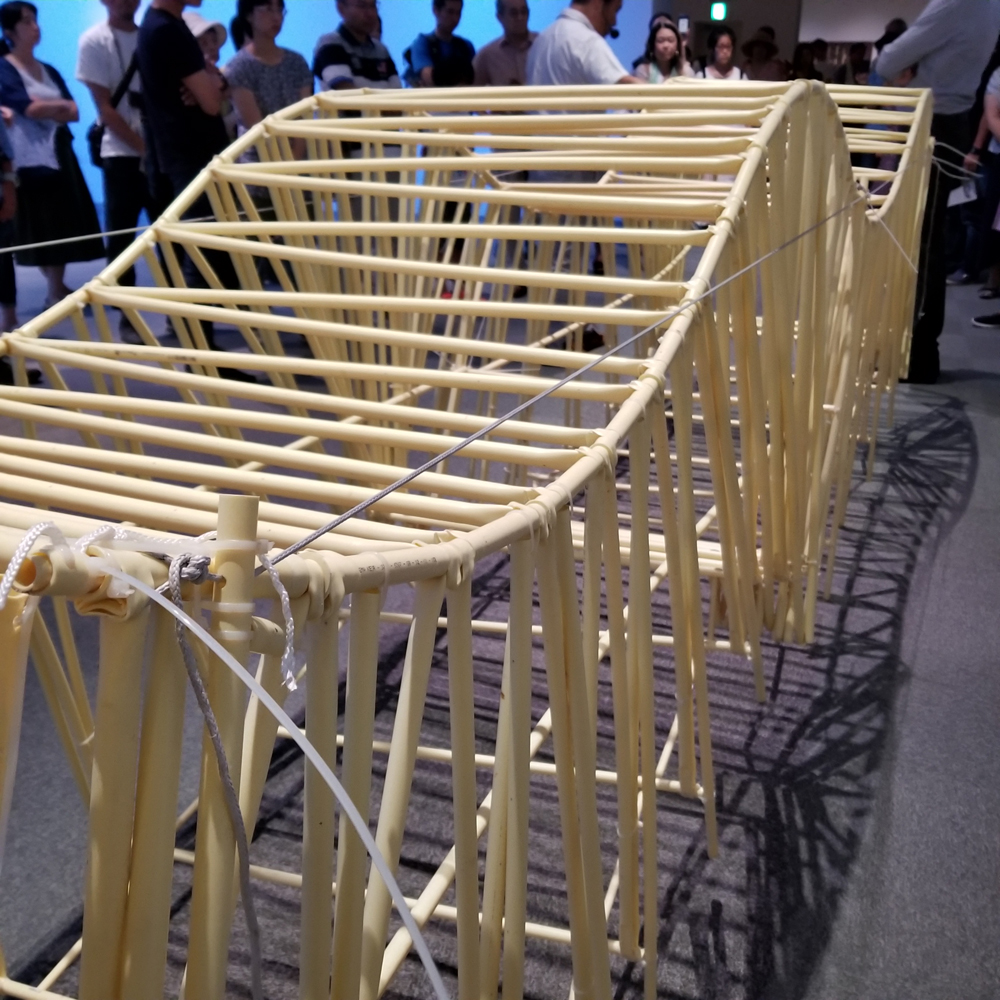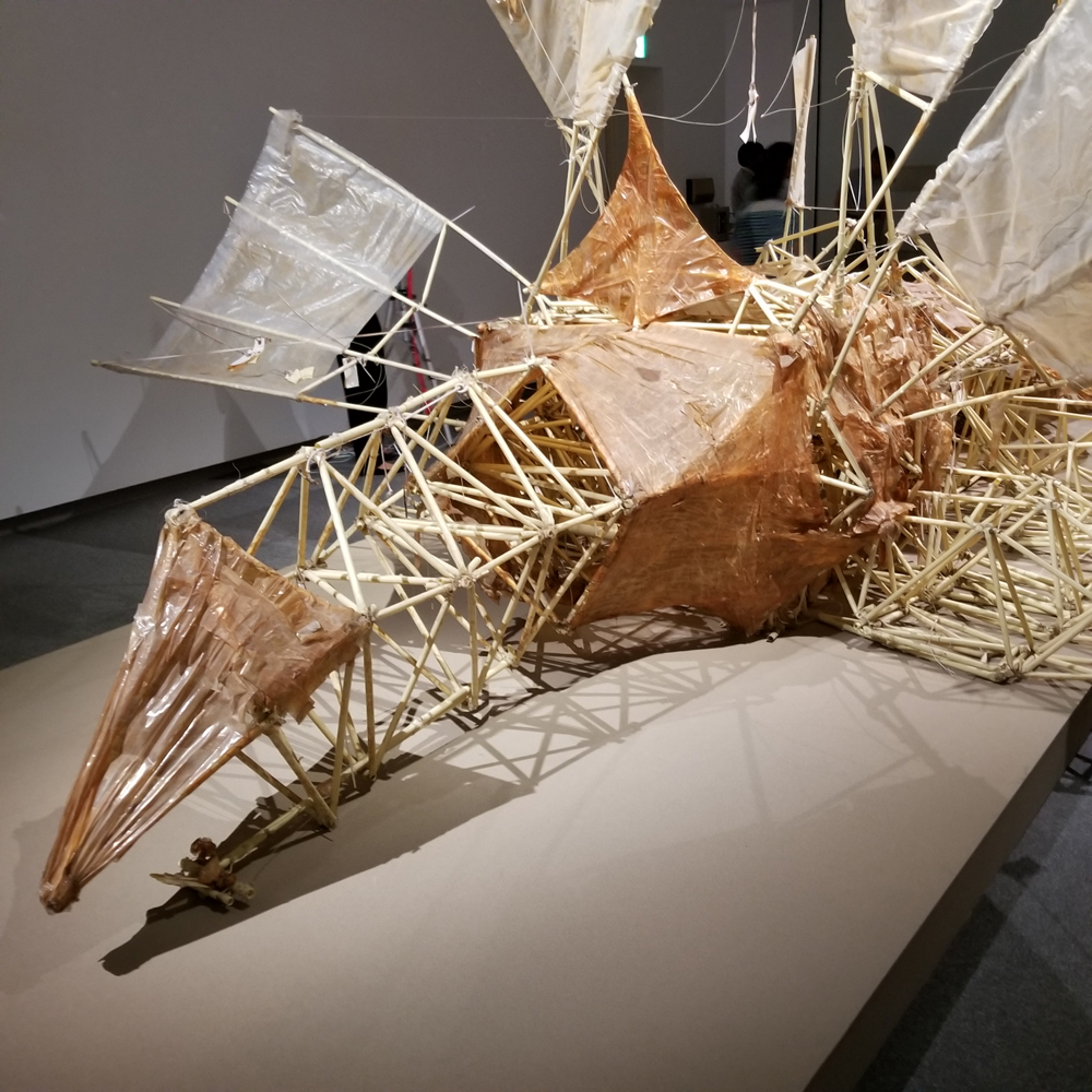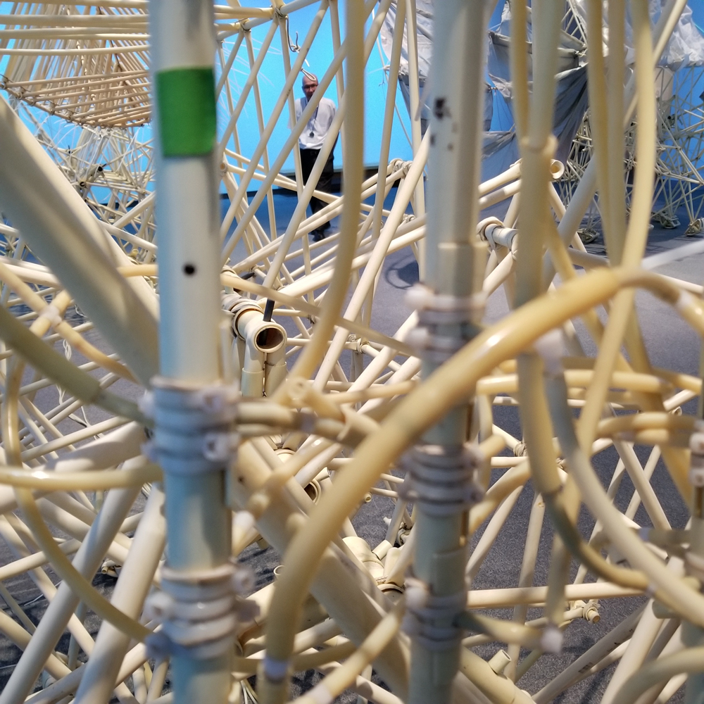 その大きさに圧倒されます。廃材のプラスティック・チューブを複雑に組み合わて作られた骨格にビックリ。