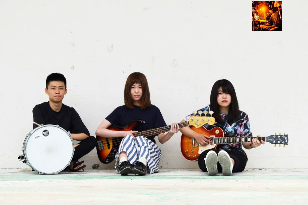 <左から、Dr.ホウダ ソウ Ba/Cho.タニグチ カヨ Vo/Gt.ウエダ サヨコ>