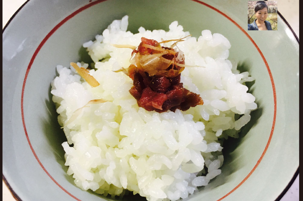 これに生節(カツオを茹でる、もしくは蒸して燻製加工した物)とショウガを合わせ、醤油をすこーしかけて白ご飯と一緒に食べますと絶品!