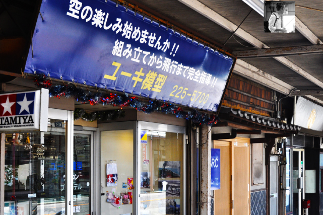 津市の岩田橋商店街にある、ユーキ模型。