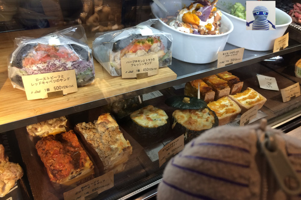 本当なら、久しぶりに会う友達とのランチだから、ゆっくり過ごすつもりだったのだけど、デリやらタルトやらディスプレイを見てると、これは記事にしたい!! と思い、急遽ミイラをひっぱり出し、スタッフの方に撮影許可の交渉…。かなりお客さんいますが、ミイラ撮影を敢行。