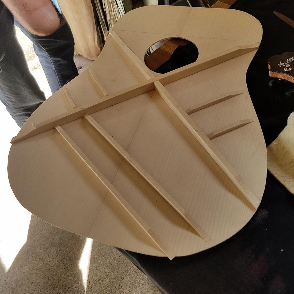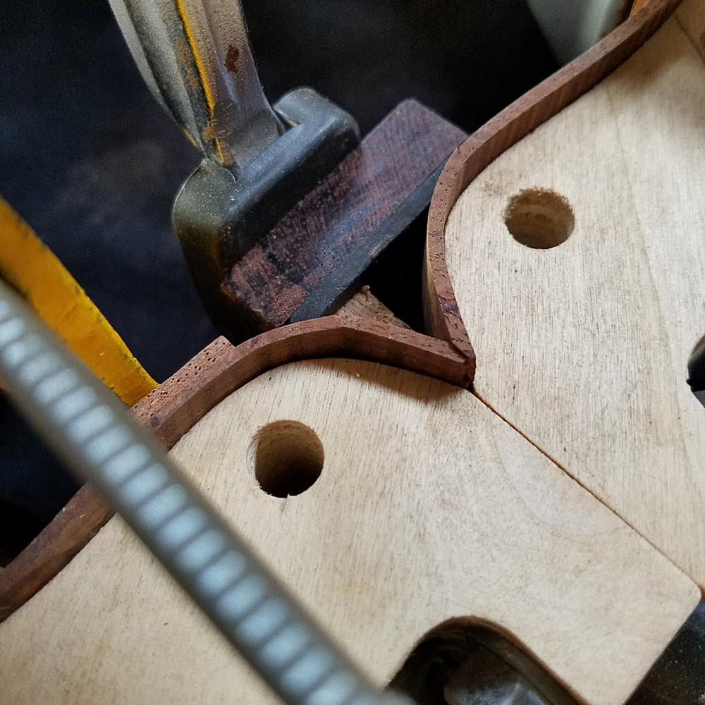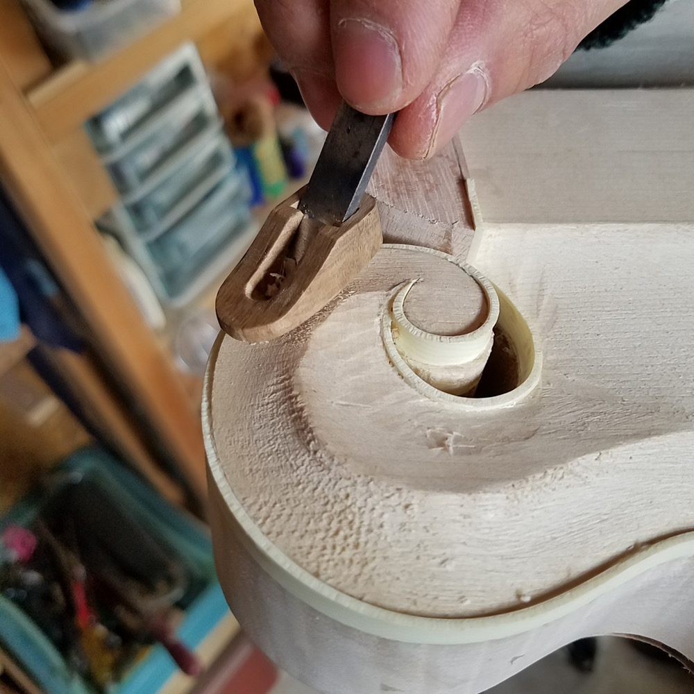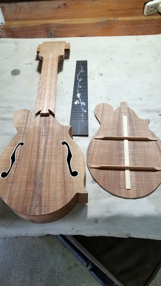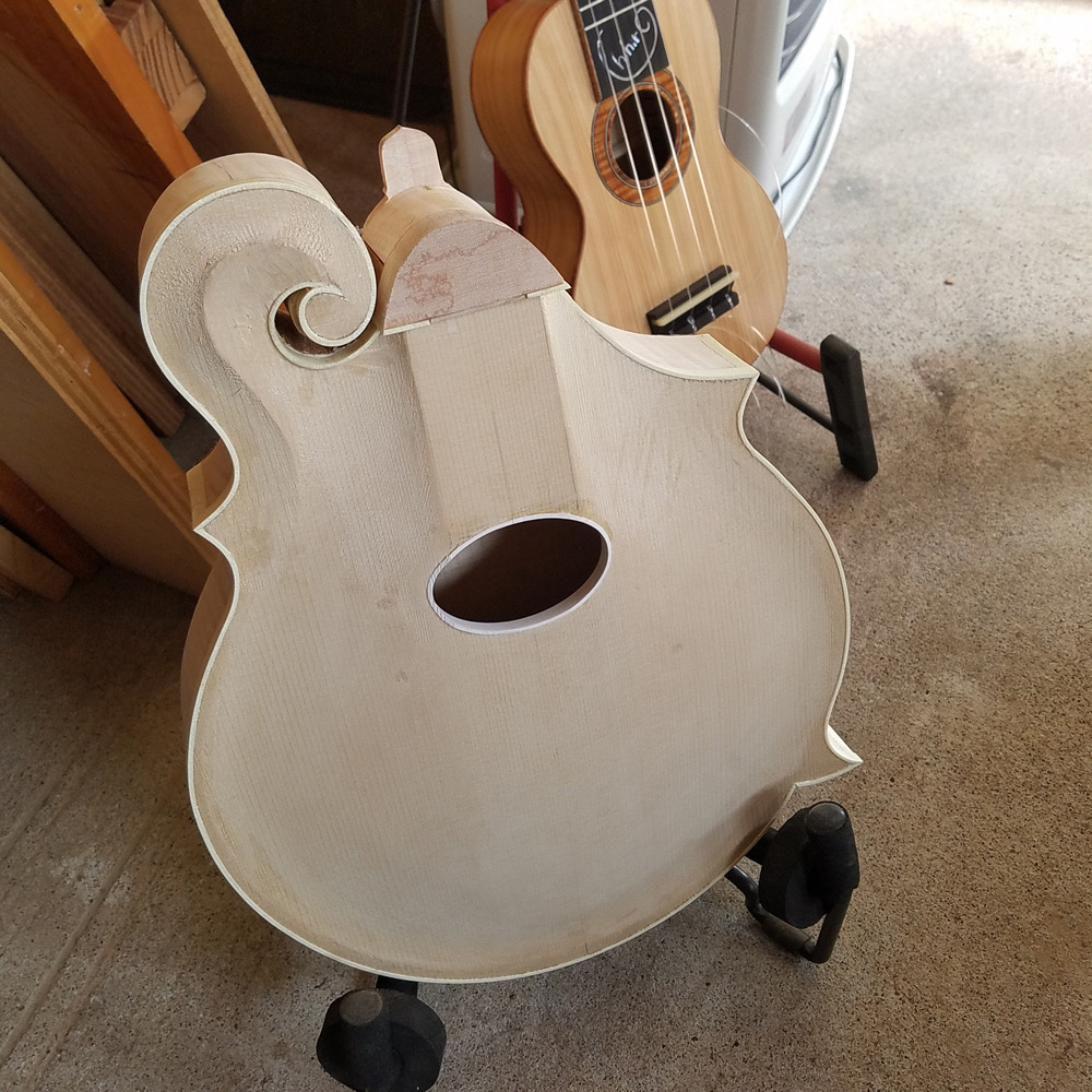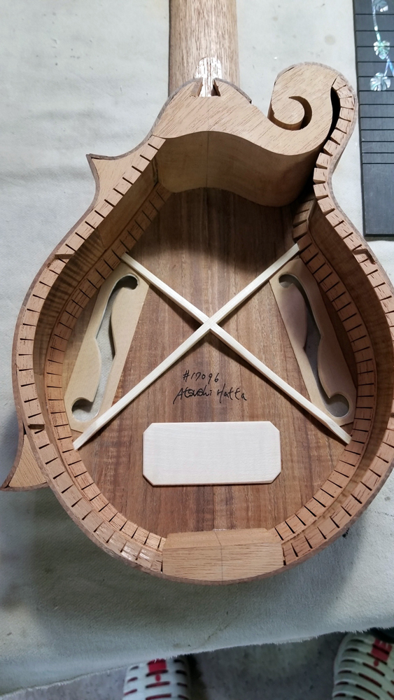 ボディー形状はマンドリン職人さんなのでマンドリン型でサウンドホールはfホールでお願いしました。