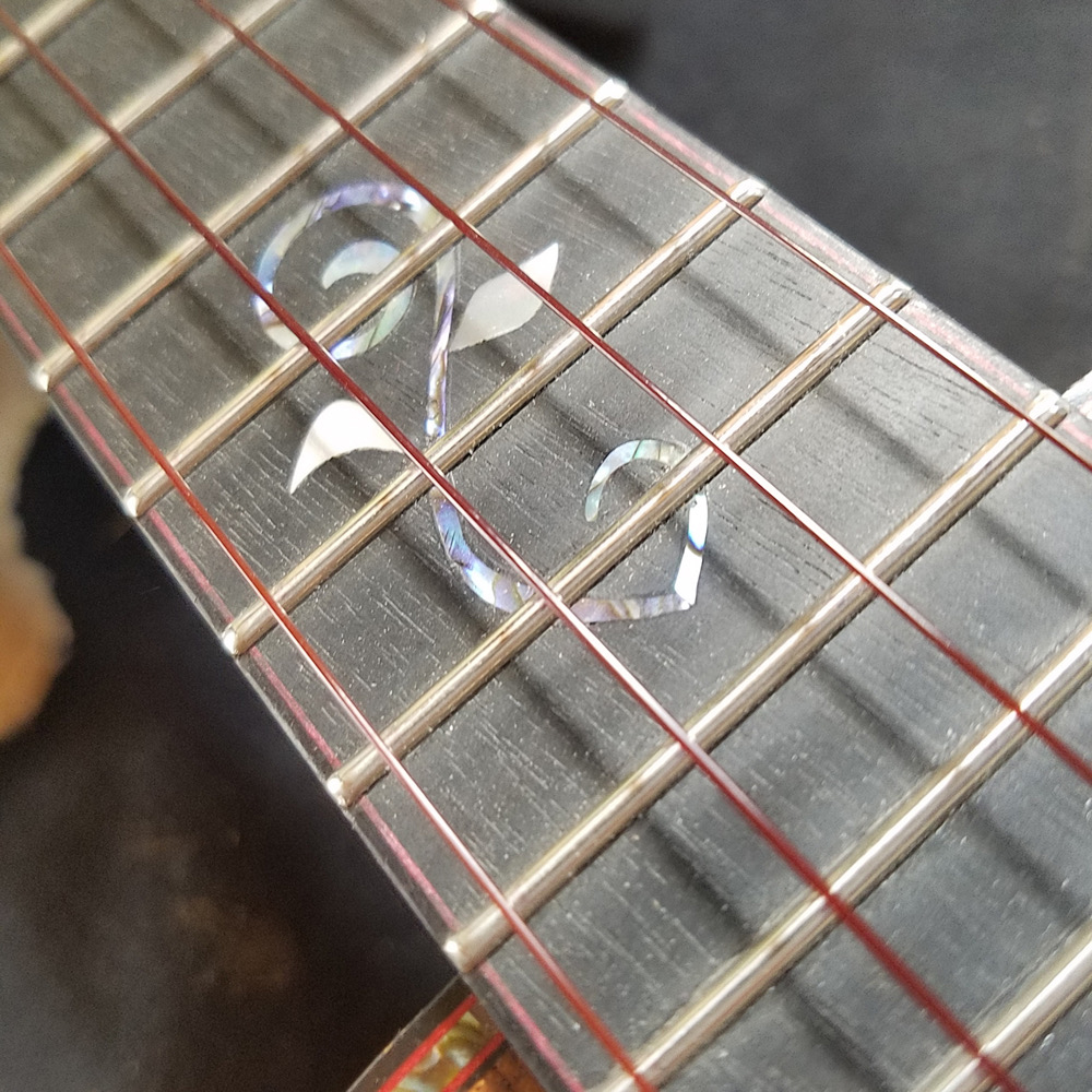 今回のウクレレでもう一つの特徴がネック部分のインレイ。