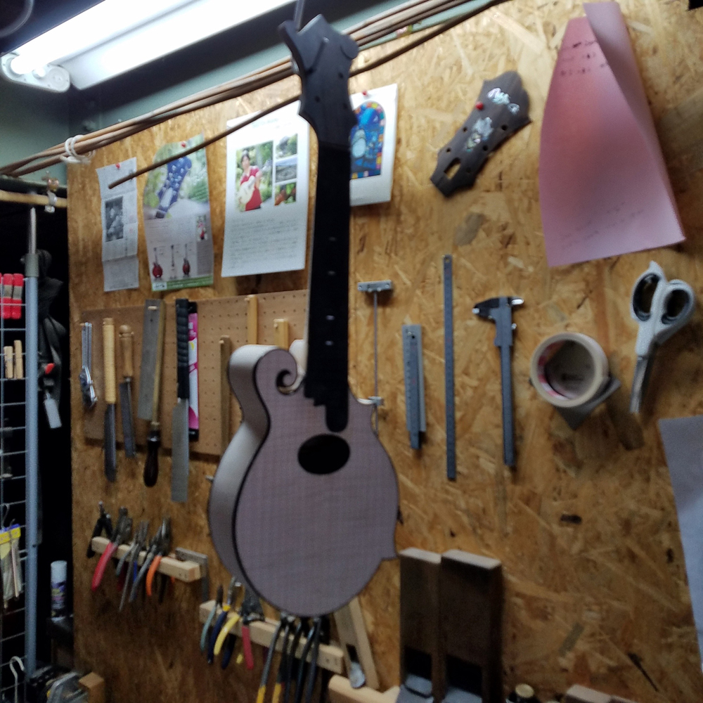 八田さんはマンドリン制作の数少ない職人さんとしていなべ市で工房を立ち上げられてます。