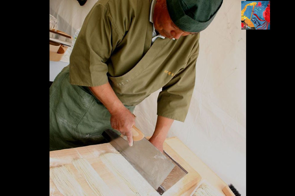 10時15分~11時半 そば打ち名人実演(唐橋名人)