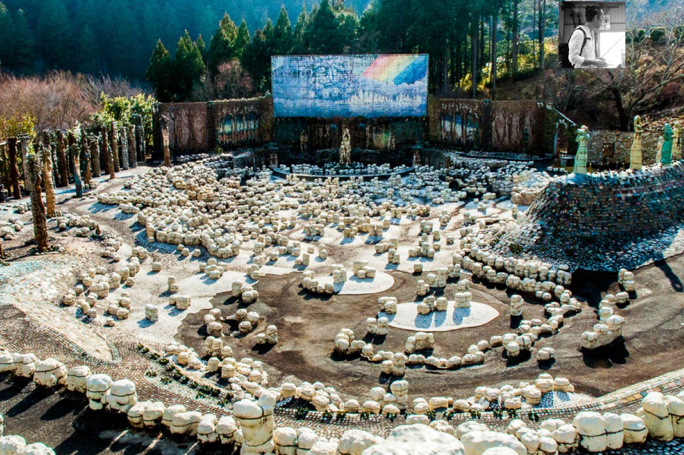東健次さん(1938年〜2013年)は飯南町で育つ。全国現代陶芸展(主催:朝日新聞)入選、日展入選。セイロン、エジプトなどを旅する。1965年に青年海外協力隊として海外任務の傍ら、虹の泉の構想を練る。アルゼンチンに移住して窯を構えたスタジオを造る。1978年に帰国し、アトリエと窯を築き、虹の泉の創作がこの地で始まる。