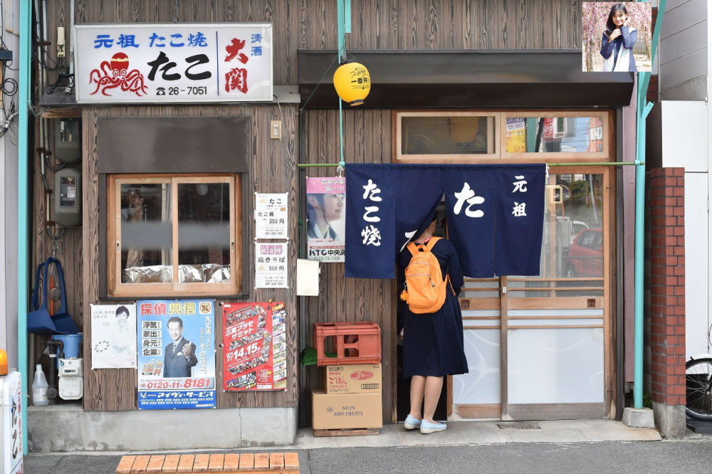 This shop is also cute. Although the taste is simple, the mini takoyaki balls have had loyal costumer already. The price is surprisingly cheap. Buy 350 JPY, we can get a pack consisted by 10 takoyaki balls. It is served using newspaper which makes it cuter and also gives “vintage” or “classic” feeling. Customer can enjoy eating takoyaki inside or outside the shop. There’s a park right beside the shop. Some people prefer to buy takoyaki then enjoy them in the park.