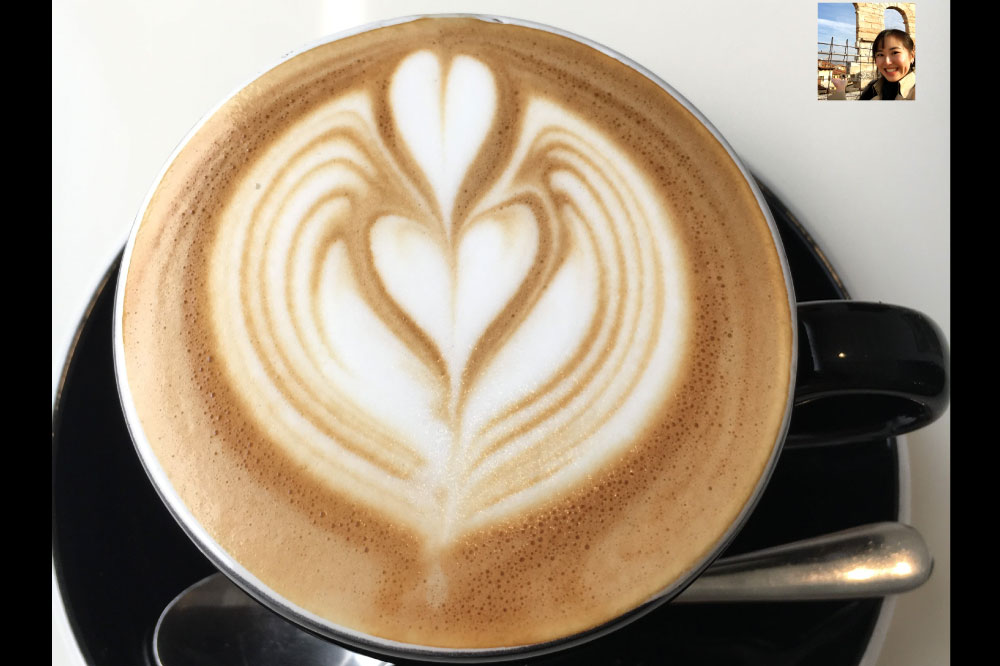 あ、一緒に写真撮る前にカプチーノ混ぜちゃった。