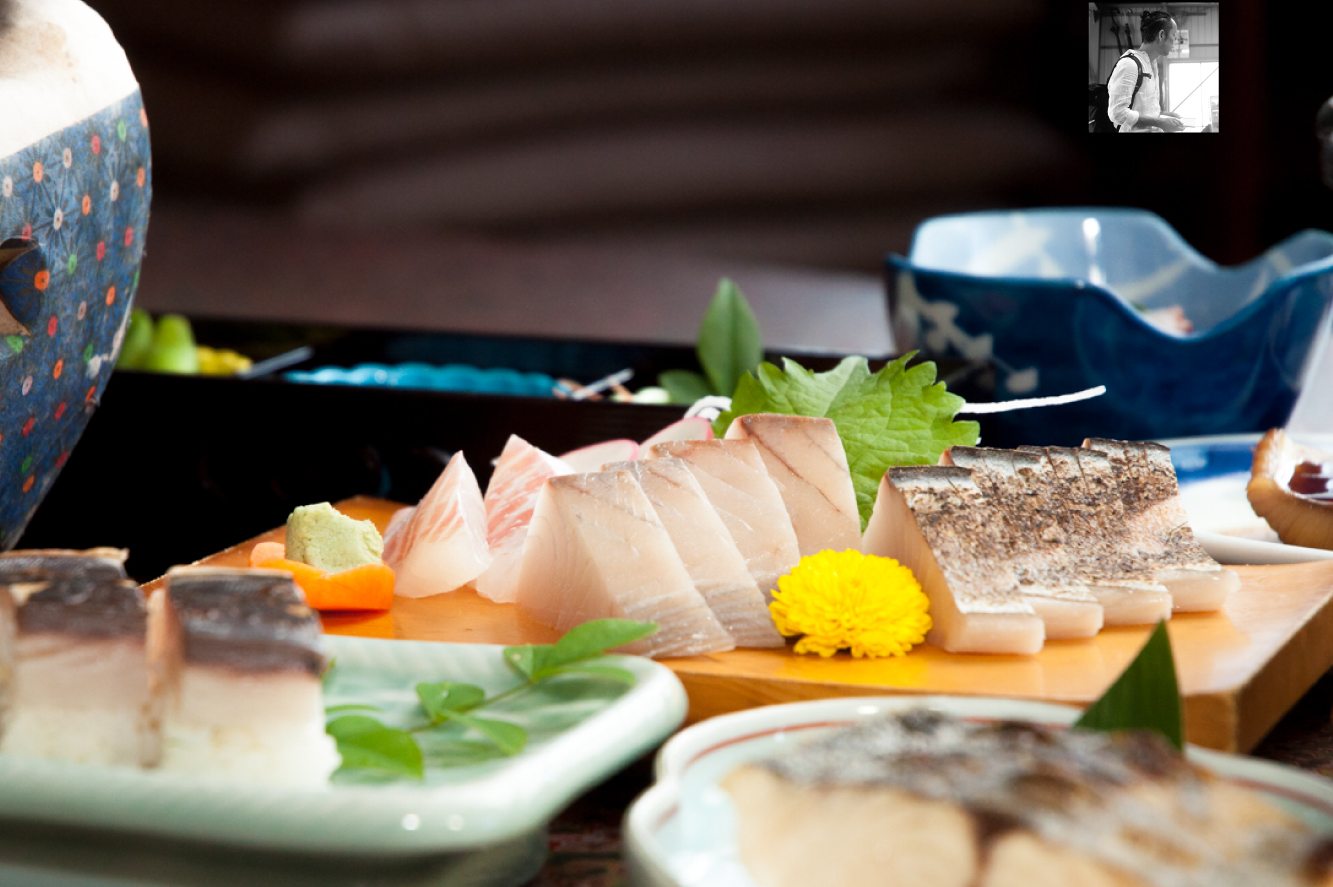 続いて、トロさわらの押し寿司、焼き物、煮付けをいただいた。