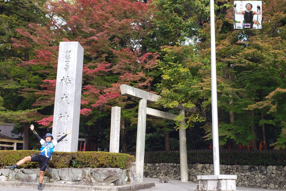まずは元気に椿大神社からスタート!ここを走り始めて直ぐ未舗装道路に入る。
