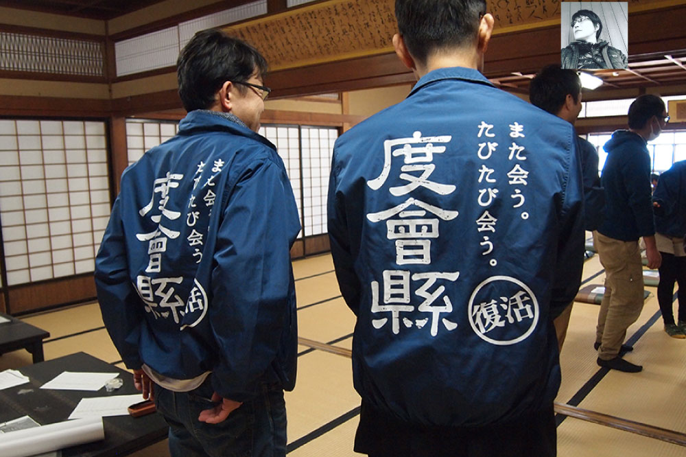 会の首謀者らしき人たち、その背中には【度会県】の文字が。やはり『三重県からの独立を謀る』為の決起集会なんだろうか…。筆者に緊張が走る。
