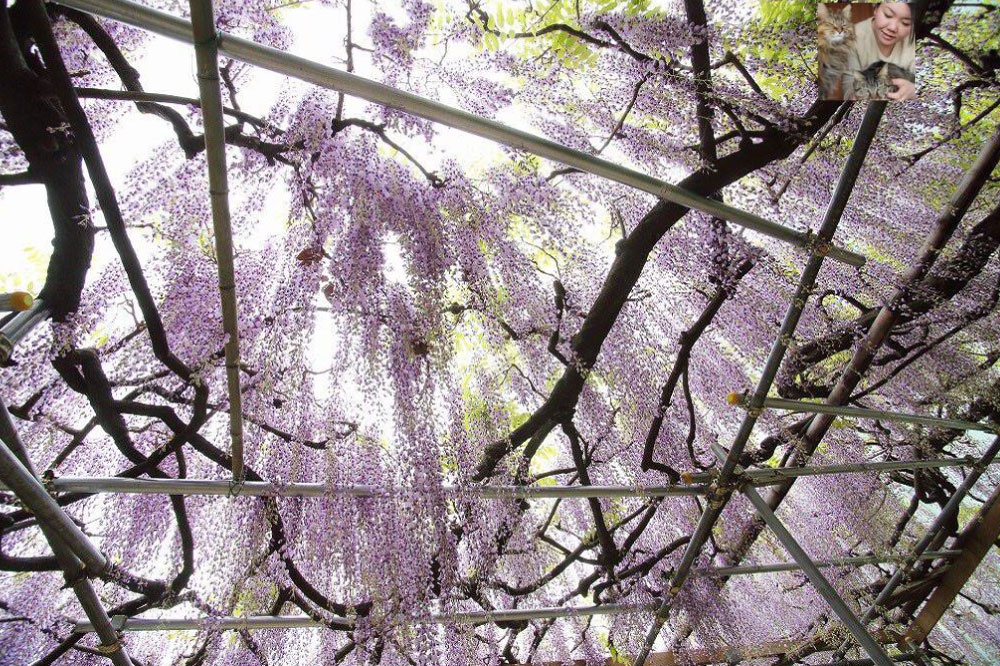 今でも美しい花を咲かせる樹齢250年以上の藤の木があるんですよ。