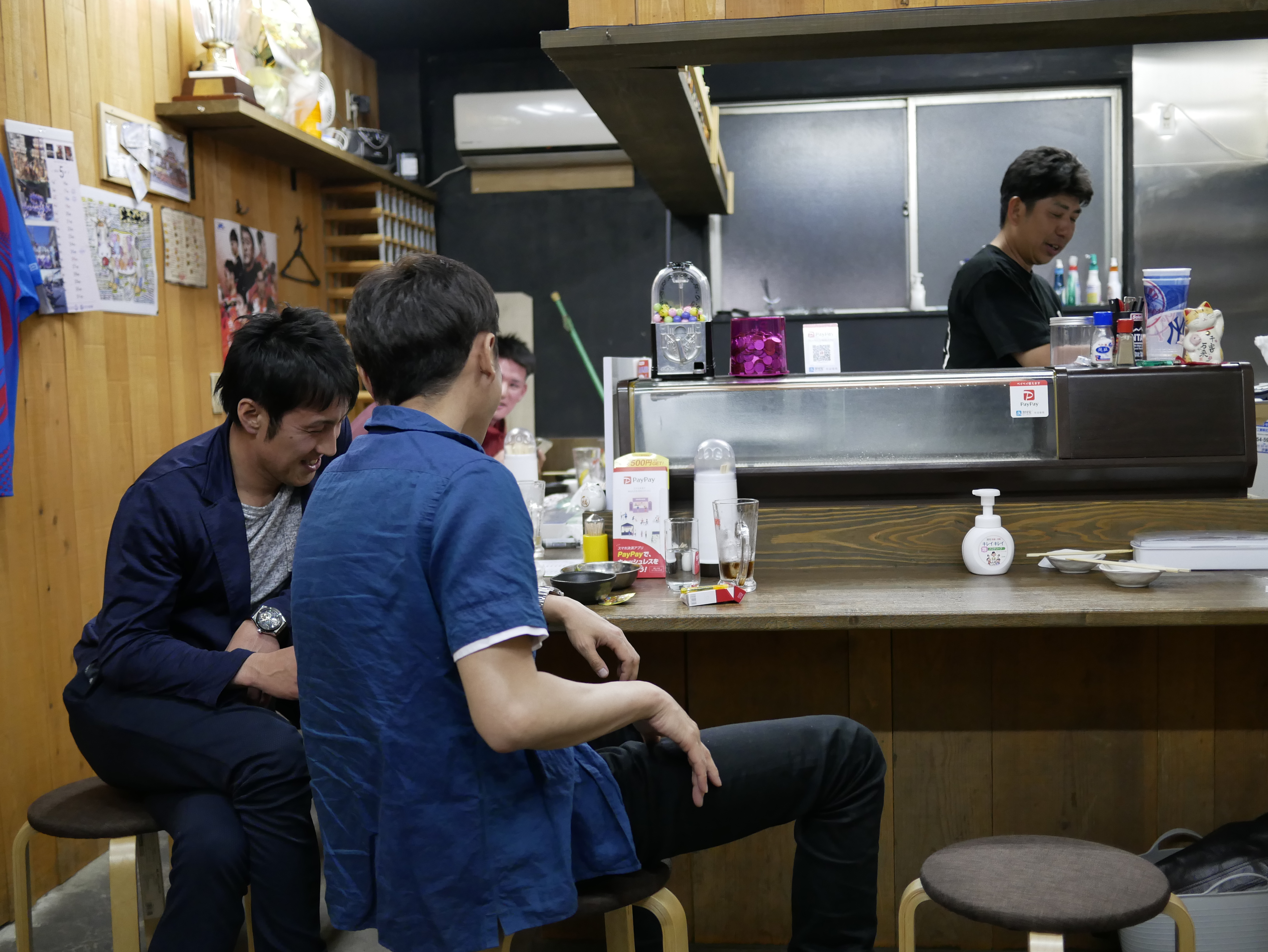 この日も急に取材をさせて頂き、店内にいらっしゃったお客様もスタッフの皆さんも喜んで写真に収まってくれた。写真を撮り出したら、バラバラに喋っていたお客様たちもなぜか交流が始まった笑