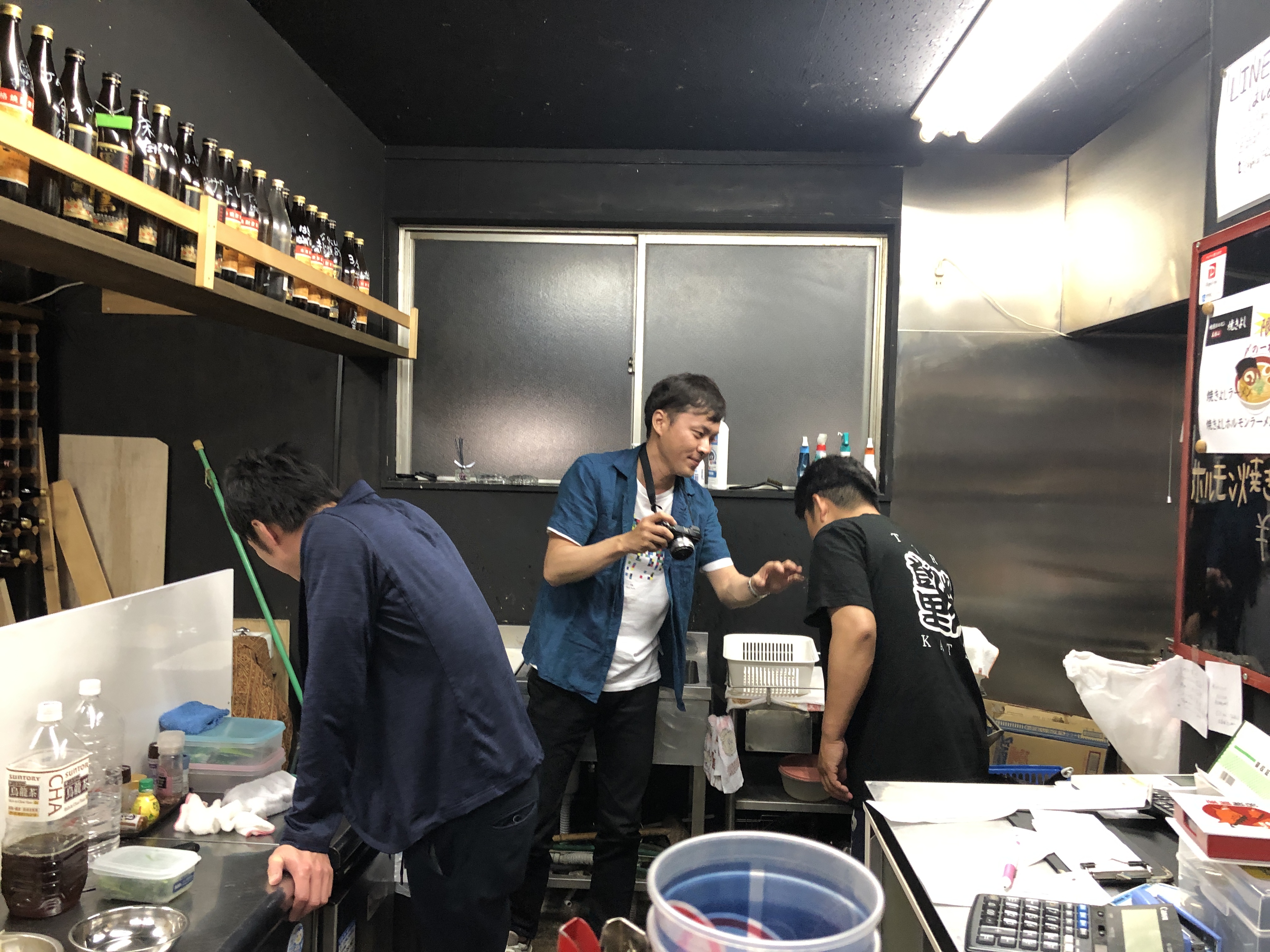 そして、よしお先輩の後輩である私は取材のお礼に洗い物をさせて頂いた。もうこれくらいの酔い加減になると、みんなが好き勝手写真を撮ってくれたので、写真を見てお店の雰囲気を感じてもらいたいと思う。