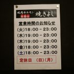 私が住む四日市市富田地区は、小学校から中学校に上がる時、他の学区と合流する事なく、まるで9年制かのように四日市市立富田小学校から四日市市立富田中学校に進学する。そして結婚しても富田で暮らしている人が多い。私ももれなくその「富田っ子」のひとりである。そんな富田で「焼きよし」という、ホルモン焼・串焼きの居酒屋を2018年2月9日にオープンさせた人がいる。