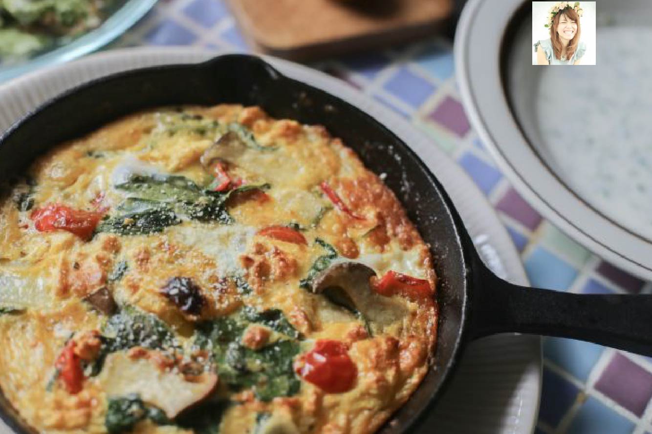 4.バターをしっかり塗ったスキレットに、炒めた野菜と3の卵を流し入れ、200℃のトースターでこんがりするまで焼いたら完成!