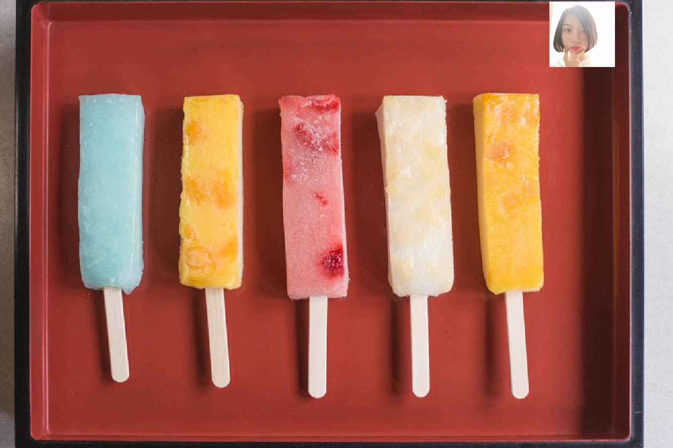 始めは、お客さんから「水まんじゅうを凍らせて食べている」と聞いたことから始まったそうな。そこからあんこの代わりにフルーツにしてみたり、いろんな改良を重ね、最終的にはアイスキャンデーからヒントを得て現在の形になったそうです。