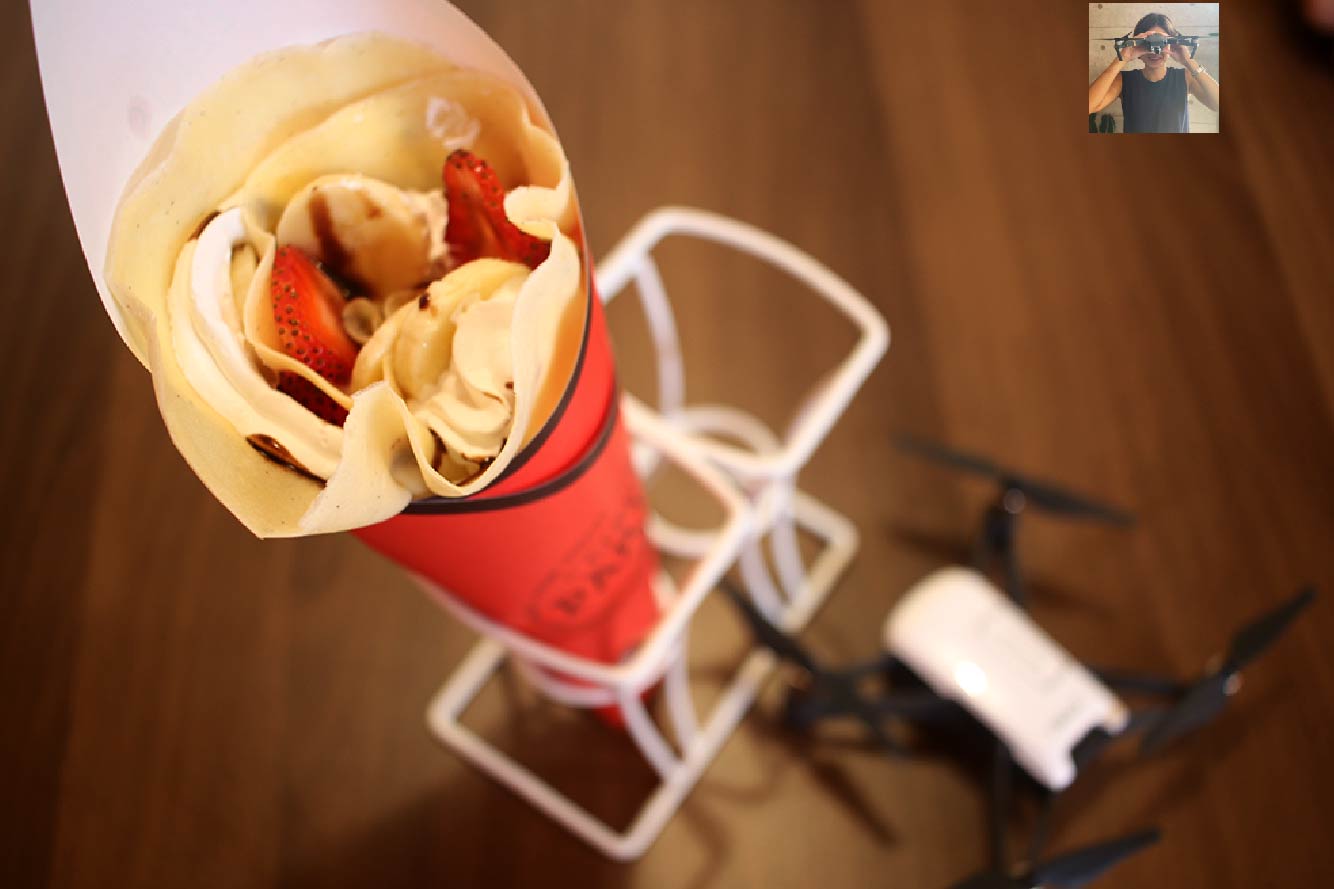 相方のドローンTELLO男くんを背景に😆😆クレープ✖️ドローン