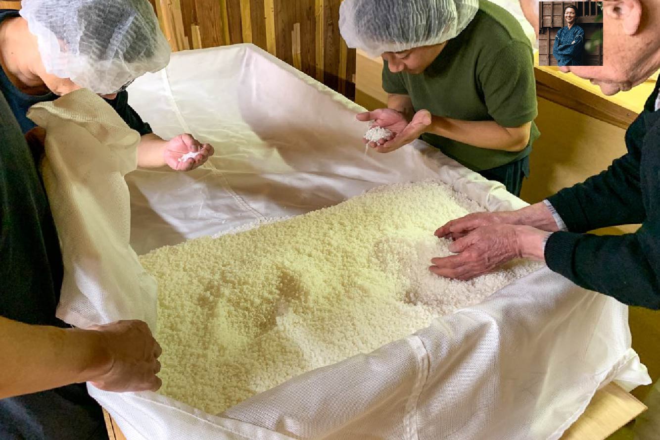 数粒をつまんで手にとり、温かくもっちりとした蒸米の感触を確かめ合う男たちの姿が、そこにはありました。