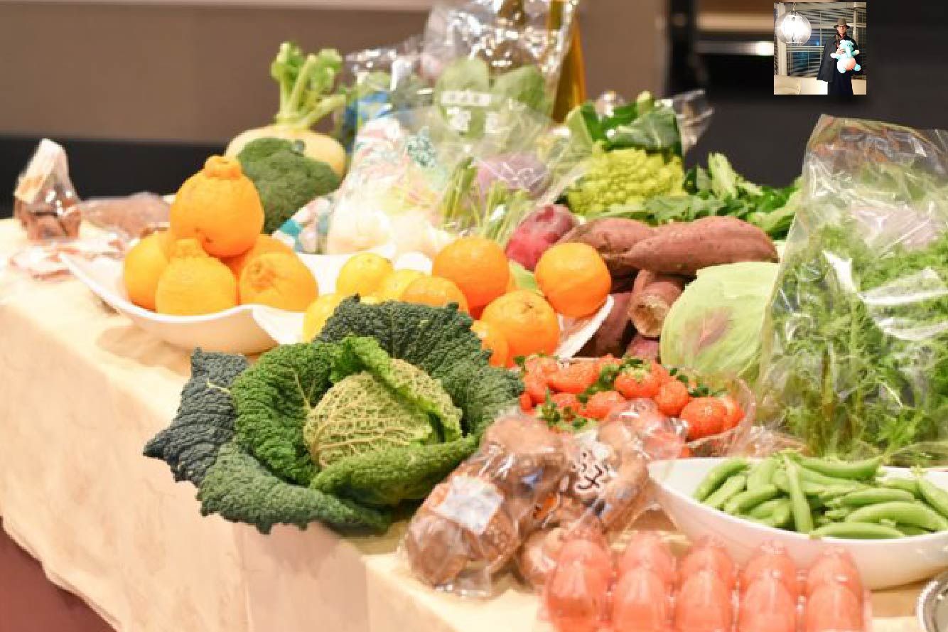 サボイキャベツを持っているのは、自らを「農民」と称する、すいーとぽたけ代表の吉川さん。普段はスーパーに並ばないようなカラフルな野菜を存分に持ち込んでいただきました。