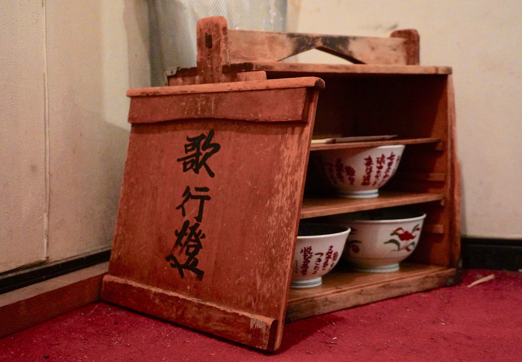 食べ終わったら、おかもちに食器を戻し玄関先に。