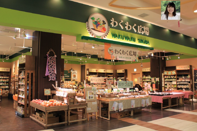 山本千穂さん「オープンは3年前の、2017年6月です。オープ二ングスタッフで入社したときはパートリーダーでした。半年後に上司であるエリアマネージャーの推薦で店長なりました。6次産業に興味あり、わくわく広場は3次の小売の現場の経験積むために始めた仕事です。