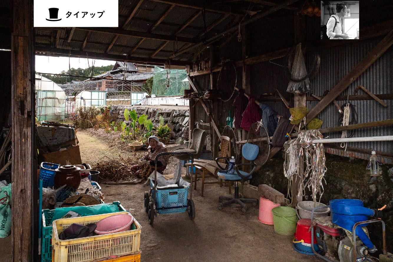 軒先で収穫した黒豆の仕分け作業をしている、中西さんの知り合いに出会った。「いい天気ですね」など、たわいもない会話。