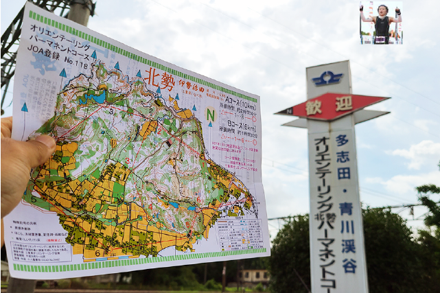 やり方としては伊勢治田駅に行って駅の改札口でオリエンテーリングのマップを購入。ここのはお安く50円でした。伊勢治田駅に何度も行ったことがあるのですが、こんなに大きなオリエンテーリングの看板があるなんて気がつかなかった!