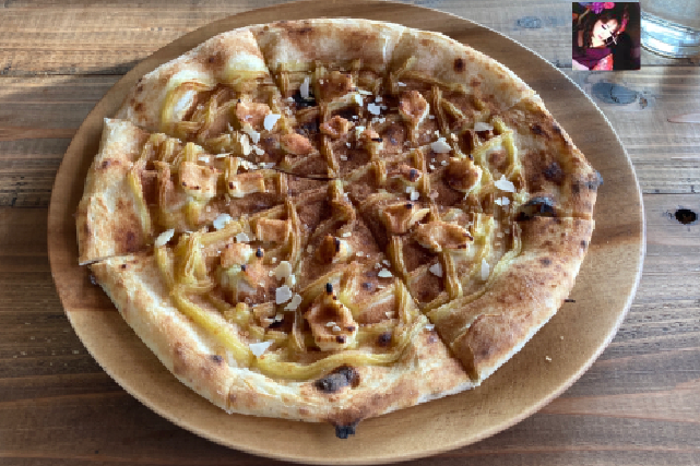 黒板メニューの中から自家製さつまいものスイートポテトピザ1100円にしました。