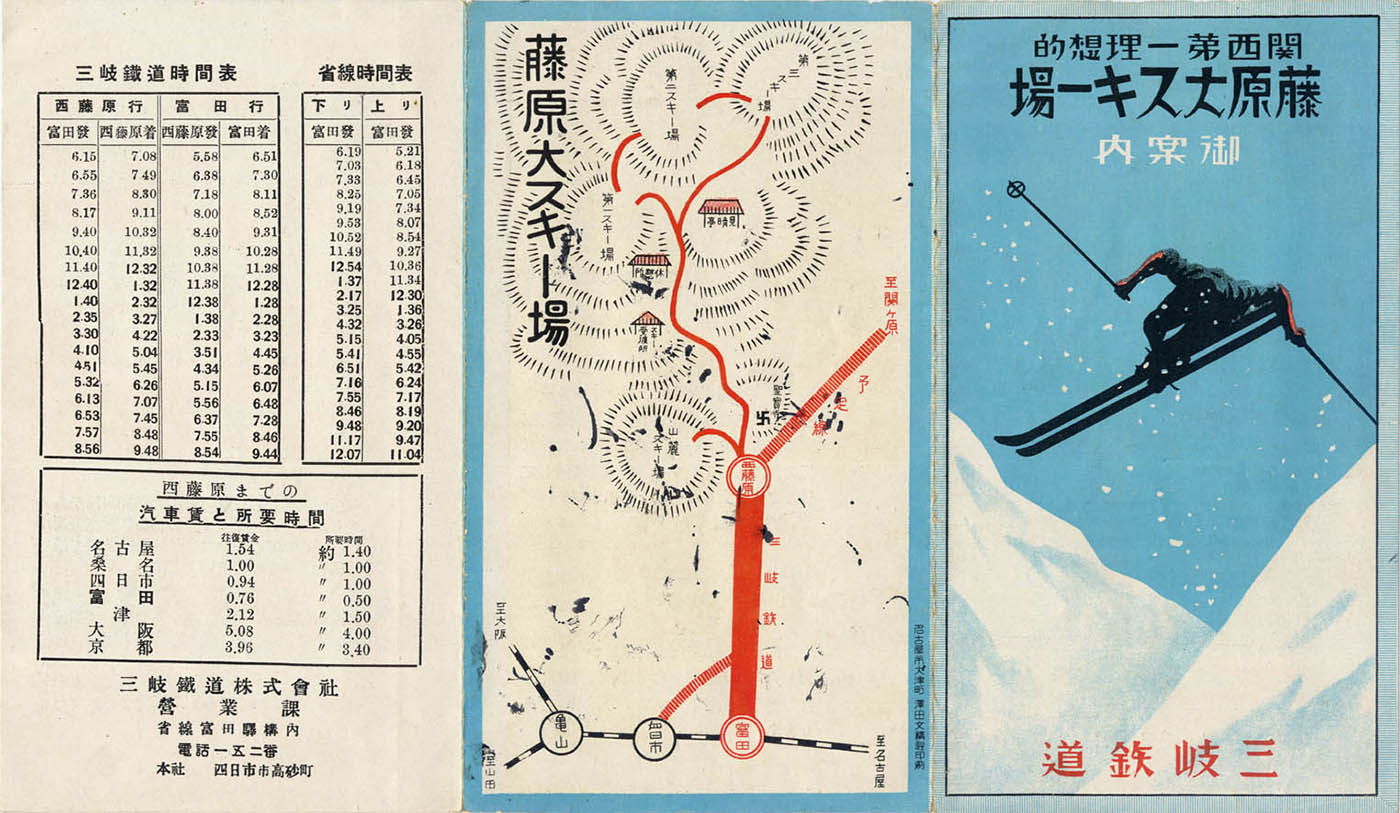 昭和6年から昭和45年まで藤原岳の山頂にスキー場があったそうです。麓からスキー板を担いで上がり、リフトのないスキー場を滑っていたそうです。日曜日は多いときで1,000人ほどで賑わってたとか。