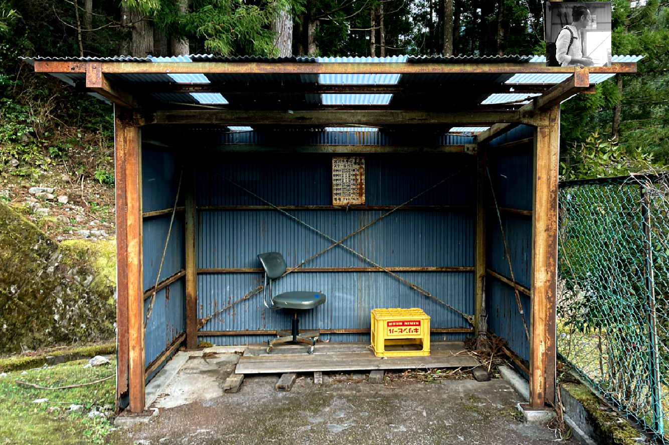 飯高の森を取材したあと、なんとも春なバス停を発見。